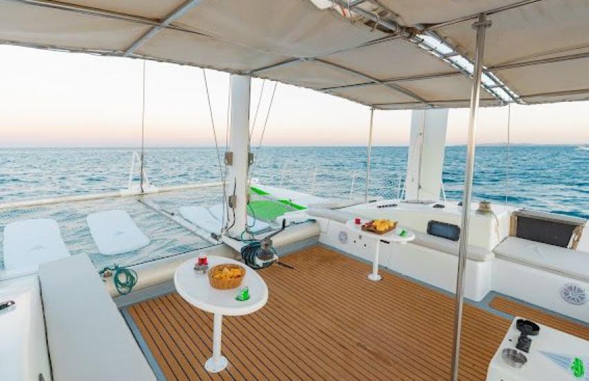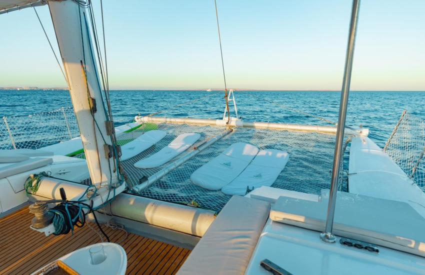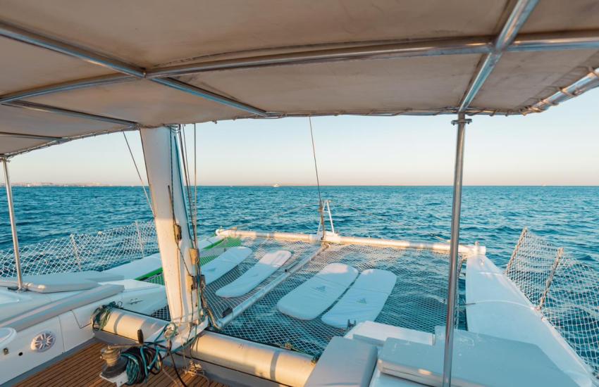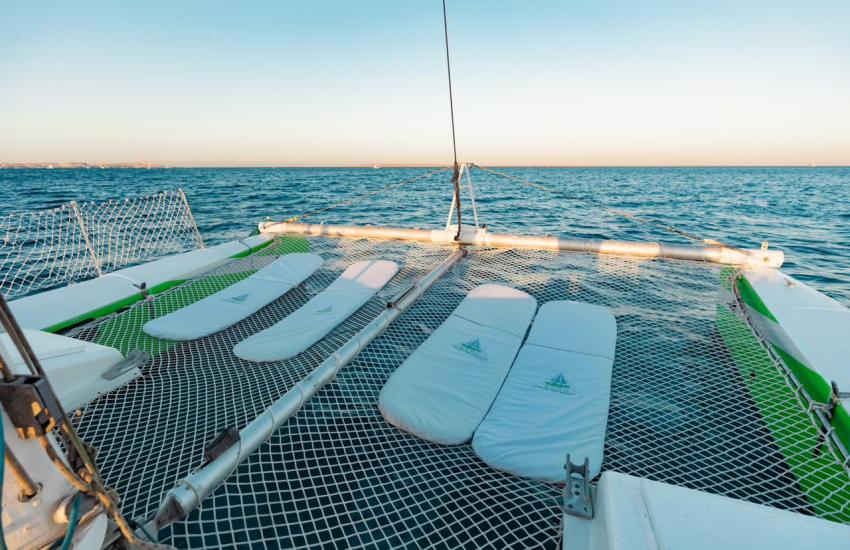 Offrez-vous une parenthèse d’exception à bord d’un catamaran privé. Partez pour une sortie exclusive de 6h laissez-vous porter par l’élégance d’une navigation tout en douceur savourez un moment bercé par le son des vagues. Installez-vous sur les filets du catamaran, au plus près de l’eau, et vivez une expérience où détente, confort et exclusivité se rencontrent.
