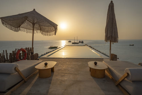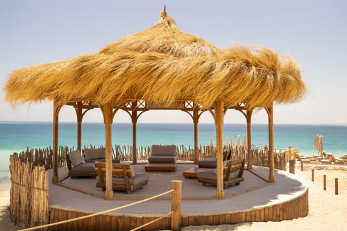 Journée à l’île Ozirea depuis Hurghada : marina 8h30, bateau 9h, snorkeling 1h, 3h sur l’île avec buffet, softs et piscine